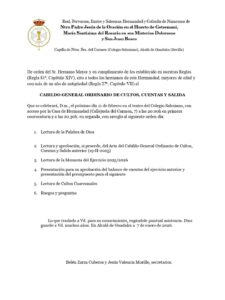 Con motivo de la Conmemoración de la Festividad de María Santísima del Rosario, mañana miércoles 7 de enero celebraremos nuestra Misa de Hermandad. Comenzará a las 20:15h con el Rezo del Santo Rosario en la Capilla de Ntra. Sra. del Carmen. Animamos a todos los hermanos y hermanas a participar en la Santa Misa. Te […]