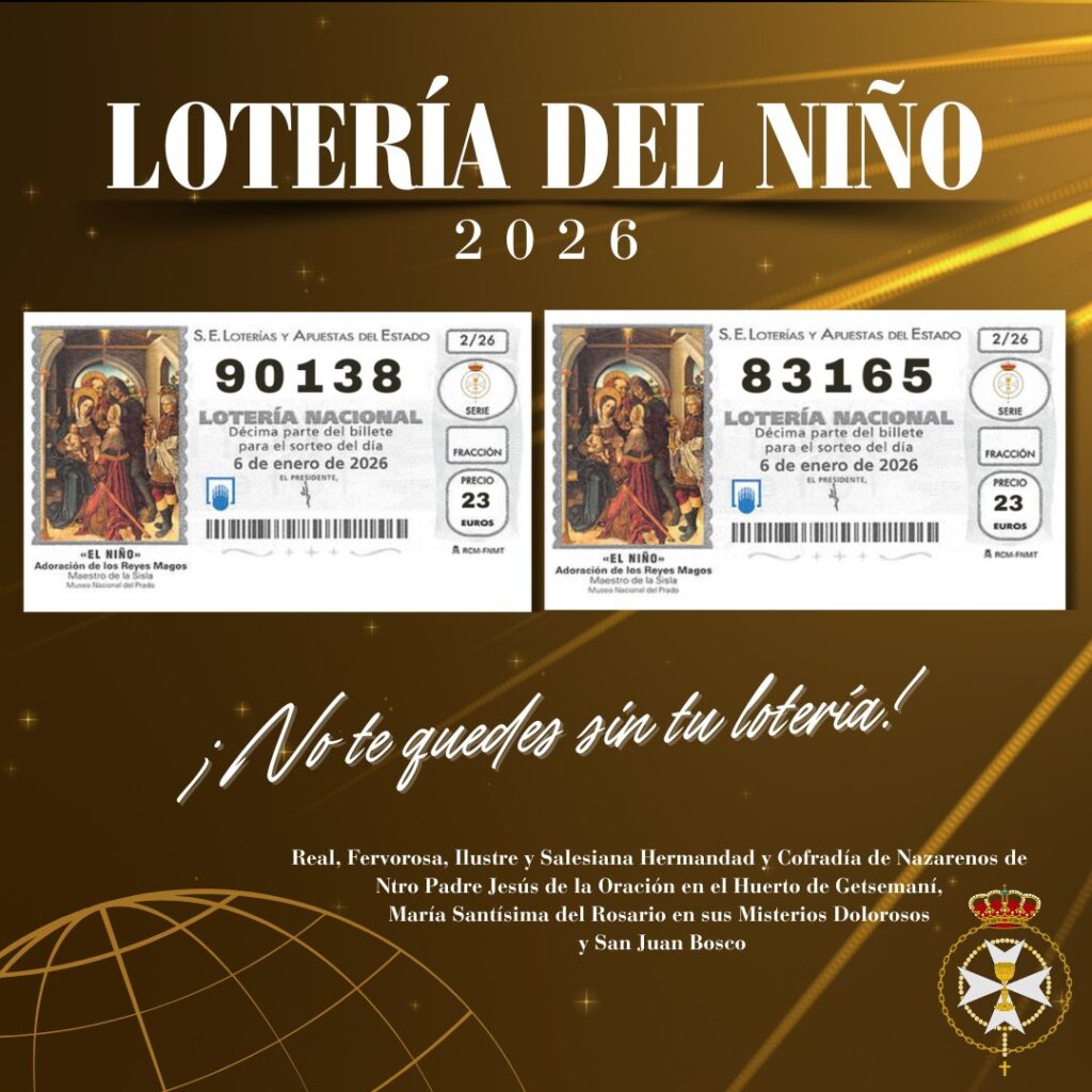 ¡Ha llegado la Lotería de El Niño! Informamos que ya están disponibles los décimos de los dos números que juega nuestra Hermandad en el sorteo del 6 de enero. Para su reserva, os podéis poner en contacto a través de los siguientes medios: Correo electrónico de mayordomía: mayordomia@rosarioyoracion.com A través de WhatsApp en el teléfono […]
