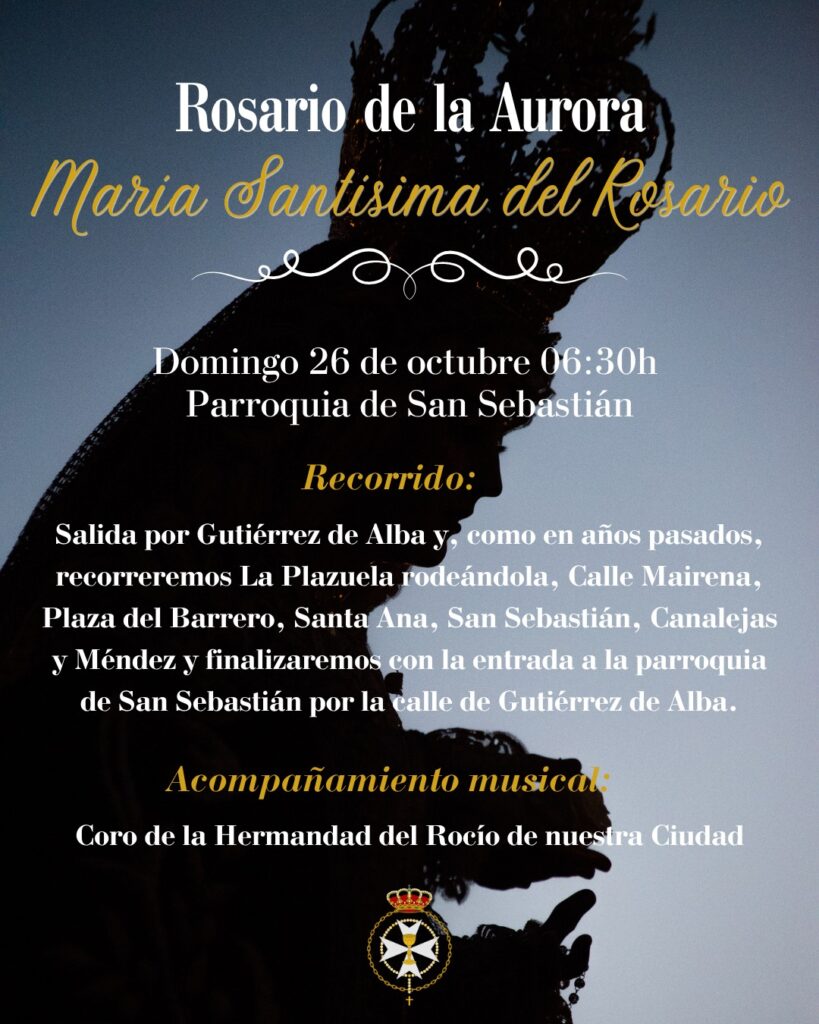 El próximo 𝐝𝐨𝐦𝐢𝐧𝐠𝐨 𝟐𝟔 𝐝𝐞 𝐨𝐜𝐭𝐮𝐛𝐫𝐞 𝐚 𝐥𝐚𝐬 𝟔:𝟑𝟎𝐡 tendrá lugar el Rosario de la Aurora de Nuestra Amantísima Titular, María Santísima del Rosario. Teniendo en cuenta el estado actual de la Callejuela del Carmen, y con la oportuna aprobación del Delegado de Asuntos Jurídicos de la Archidiócesis de Sevilla, Don Miguel Vázquez Lombo, conforme […]
