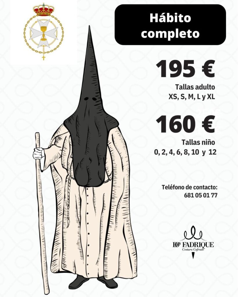 La Hermandad, en colaboración con la empresa Don Fadrique – Costura Cofrade, pondrá a disposición de hermanos y devotos la adquisición de túnicas de nazareno de cara a la próxima Estación de Penitencia. El precio de las mismas será el siguiente: Tallas niño: 160 € Tallas adulto: 195 € La túnica se entregará como […]