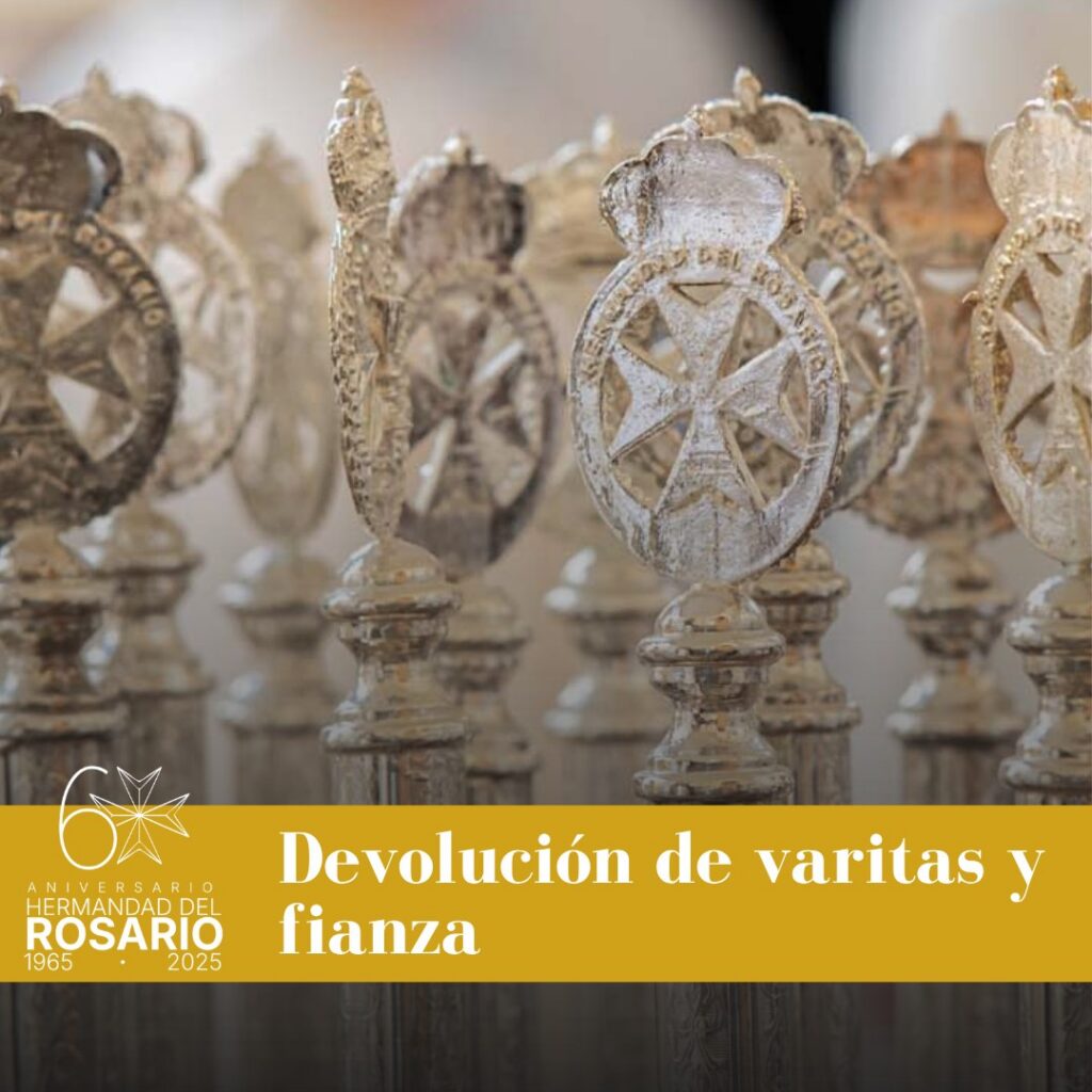 Atención hermanos y hermanas, Informamos que desde 𝗵𝗼𝘆, 𝟲 𝗱𝗲 𝗮𝗯𝗿𝗶𝗹, 𝗵𝗮𝘀𝘁𝗮 𝗲𝗹 𝘃𝗶𝗲𝗿𝗻𝗲𝘀 𝟭𝟬 𝗱𝗲 𝗮𝗯𝗿𝗶𝗹, en horario de atención al hermano, se realizará la 𝗱𝗲𝘃𝗼𝗹𝘂𝗰𝗶𝗼́𝗻 𝗱𝗲 𝗹𝗮𝘀 𝘃𝗮𝗿𝗶𝘁𝗮𝘀 𝘆 𝗹𝗮 𝗳𝗶𝗮𝗻𝘇𝗮 𝗱𝗲𝗽𝗼𝘀𝗶𝘁𝗮𝗱𝗮 por los hermanos menores que las portaron durante el pasado Domingo de Ramos. – Atención al hermano (Mayordomía): * Lunes 6, […]