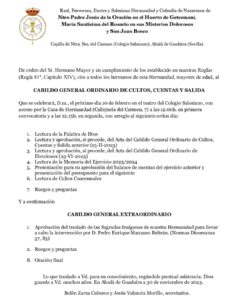 Desde esta Hermandad, se convoca a todos los hermanos mayores de edad al Cabildo General Ordinario de Cultos, Cuentas y Salida que se celebrará, D.m, el próximo 𝐬𝐚́𝐛𝐚𝐝𝐨 𝟏𝟎 𝐝𝐞 𝐟𝐞𝐛𝐫𝐞𝐫𝐨 𝐞𝐧 𝐞𝐥 𝐭𝐞𝐚𝐭𝐫𝐨 𝐝𝐞𝐥 𝐂𝐨𝐥𝐞𝐠𝐢𝐨 𝐒𝐚𝐥𝐞𝐬𝐢𝐚𝐧𝐨.