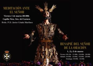 Además, durante el 𝐯𝐢𝐞𝐫𝐧𝐞𝐬 𝟏, 𝐬𝐚́𝐛𝐚𝐝𝐨 𝟐 𝐲 𝐞𝐥 𝐝𝐨𝐦𝐢𝐧𝐠𝐨 𝟑 𝐝𝐞 𝐦𝐚𝐫𝐳𝐨 tendrá lugar el 𝐒𝐨𝐥𝐞𝐦𝐧𝐞 𝐁𝐞𝐬𝐚𝐩𝐢𝐞́ 𝐝𝐞𝐥 𝐒𝐞𝐧̃𝐨𝐫 𝐝𝐞 𝐥𝐚 𝐎𝐫𝐚𝐜𝐢𝐨́𝐧 con el siguiente horario: