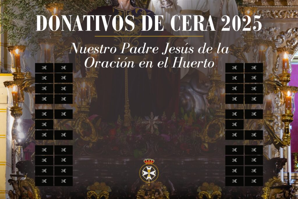 La Hermandad pone a disposición de los hermanos, hermanas y devotos la cera de los pasos de Nuestros Amantísimos Titulares que los alumbrarán el próximo Domingo Ramos.