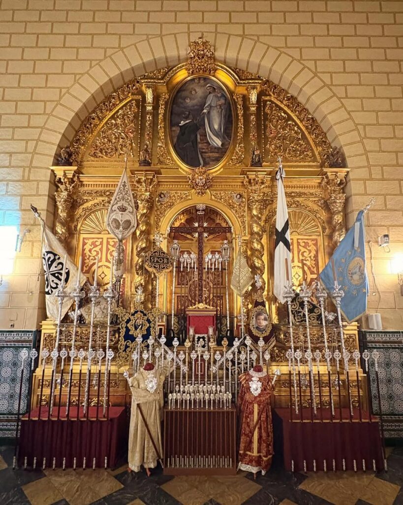 Ya se encuentra en nuestra Capilla el altar de insignias de la cofradía, preparado por la Diputación Mayor de Gobierno, para el próximo Domingo de Ramos.