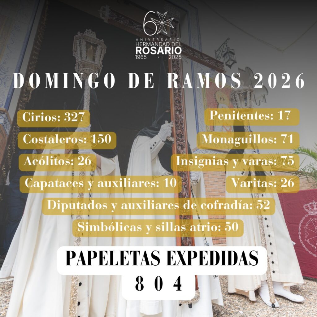 La Hermandad del Rosario informa del total de papeletas de sitio expedidas para la próxima Estación de Penitencia del Domingo de Ramos.