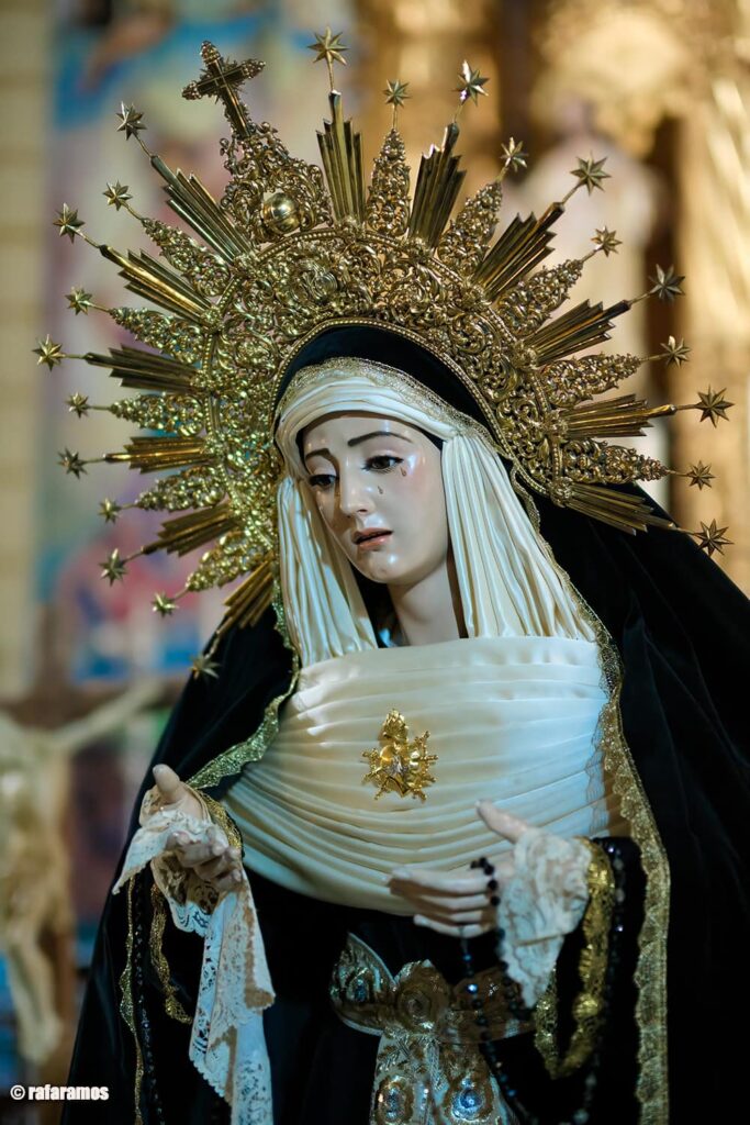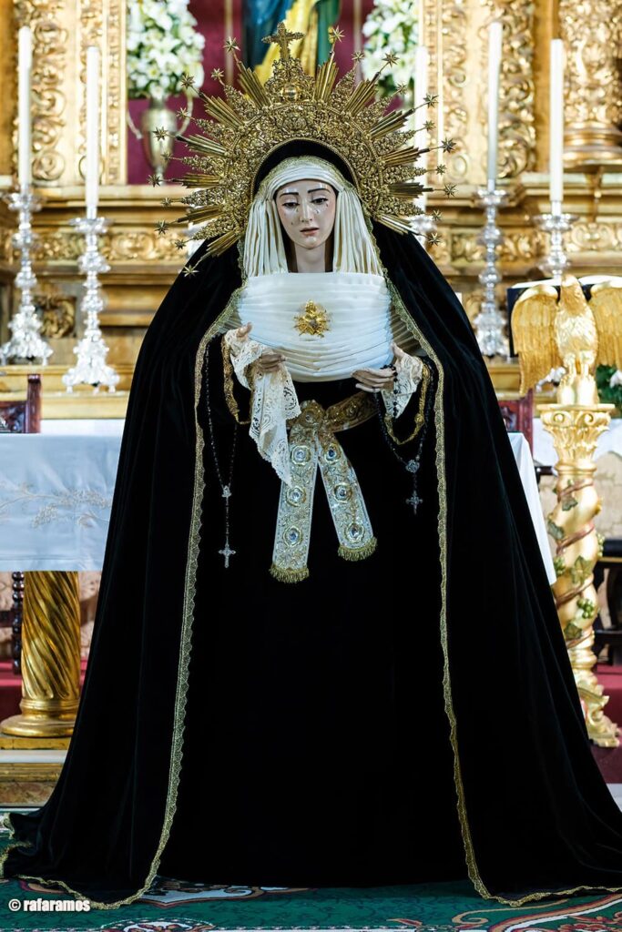 Así luce María Santísima del Rosario para la conmemoración de los Fieles Difuntos.