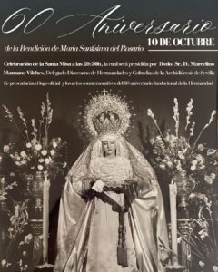 El próximo viernes 10 de octubre, nuestra Hermandad celebrará una Solemne Eucaristía con motivo del 60º aniversario de la Bendición de María Santísima del Rosario