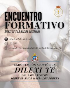 El próximo 𝐦𝐚𝐫𝐭𝐞𝐬 𝟐 𝐝𝐞 𝐝𝐢𝐜𝐢𝐞𝐦𝐛𝐫𝐞 𝐚 𝐥𝐚𝐬 𝟐𝟎:𝟑𝟎𝐡 𝐞𝐧 𝐧𝐮𝐞𝐬𝐭𝐫𝐚 𝐂𝐚𝐬𝐚 𝐡𝐞𝐫𝐦𝐚𝐧𝐝𝐚𝐝 celebraremos una formación muy especial centrada en la 𝐄𝐱𝐡𝐨𝐫𝐭𝐚𝐜𝐢𝐨́𝐧 𝐀𝐩𝐨𝐬𝐭𝐨́𝐥𝐢𝐜𝐚 “𝐃𝐢𝐥𝐞𝐱𝐢 𝐭𝐞”(“𝐓𝐞